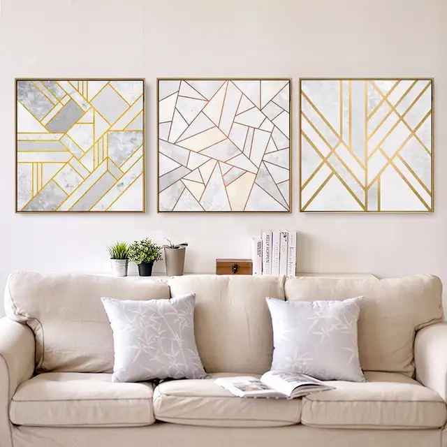 Abstract Geometric Canvas Painting Grey Gold Red Nordic Posters