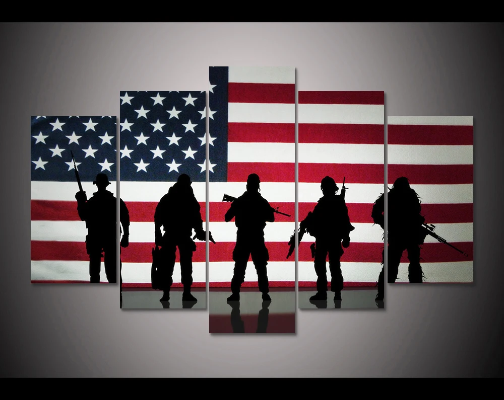 Hd Print 5 Pcs American Flag Soldiers Canvas Wall Art Painting