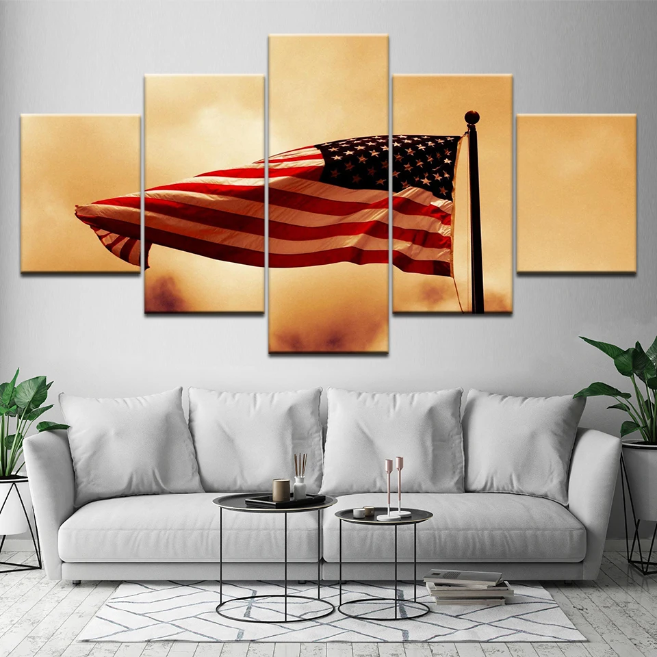 Modern 5 Panel American Flag Wall Art Canvas Painting Modular