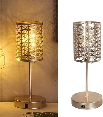 Gold Decorative Table Lamp Battery Operated Metal Cage Desk Lamp