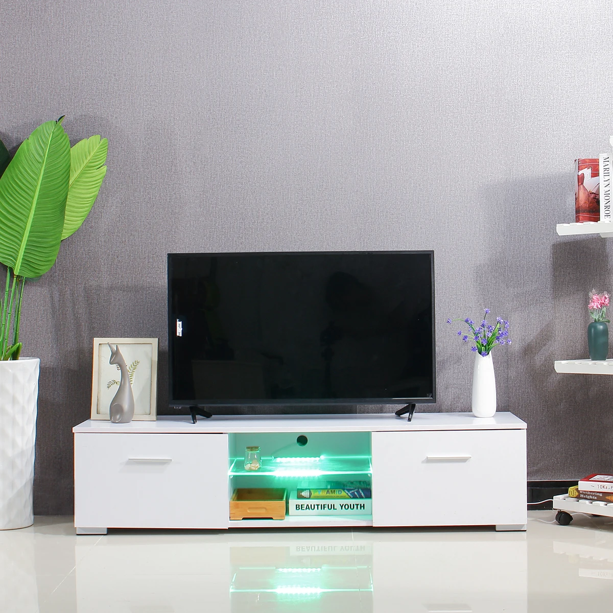 57 Tv Unit Cabinet Stand Led Light High Gloss White Black Table
