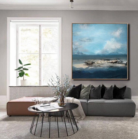Large Sky Sea Canvas Paintingoriginal Light Blue Sky Etsy