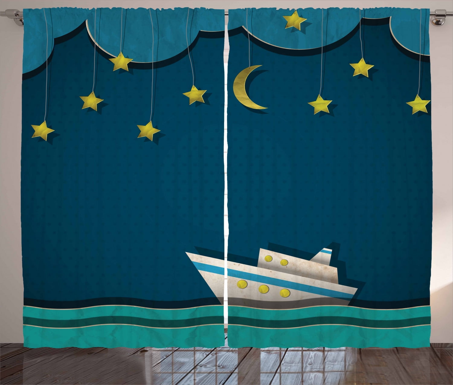 Vintage Boat Curtains 2 Panels Set Moon And Stars In The Sky