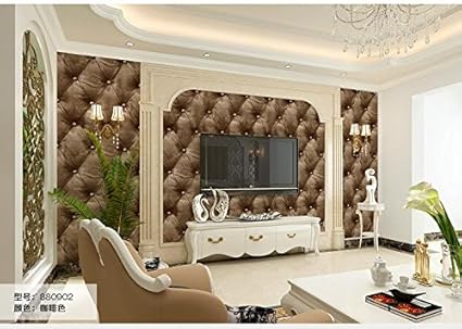 Luxurious Living Room Wallpaper Brown Color With 3d Leather