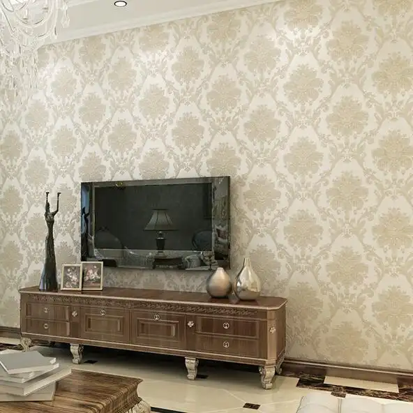 Vintage Luxury European Khaki Brown Beige Damask Wallpaper For
