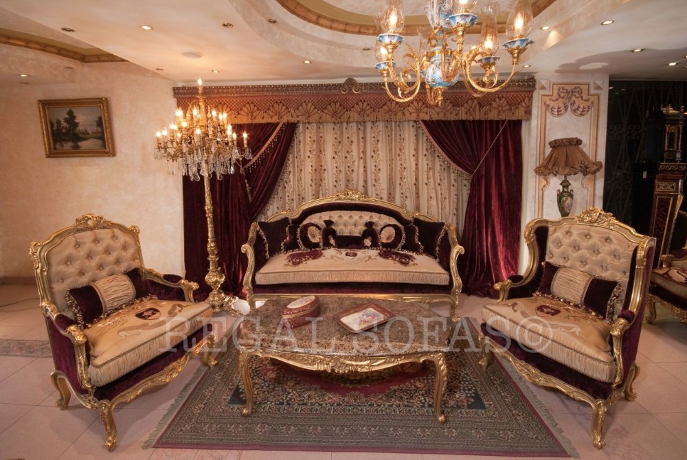 Velvet Gold Maroon Red Sofa Armchair Couch Suite Salon Set Living