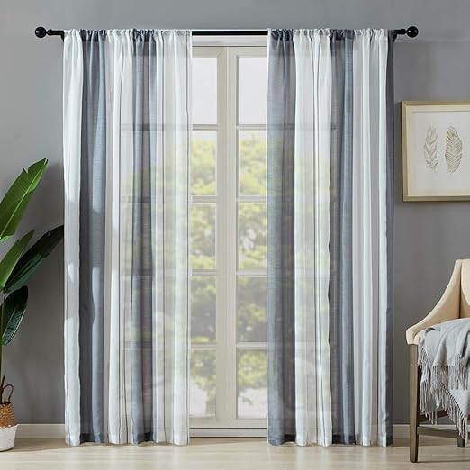 Amazon Com Mrtrees Striped Sheer Curtains Living Room 72 Inches