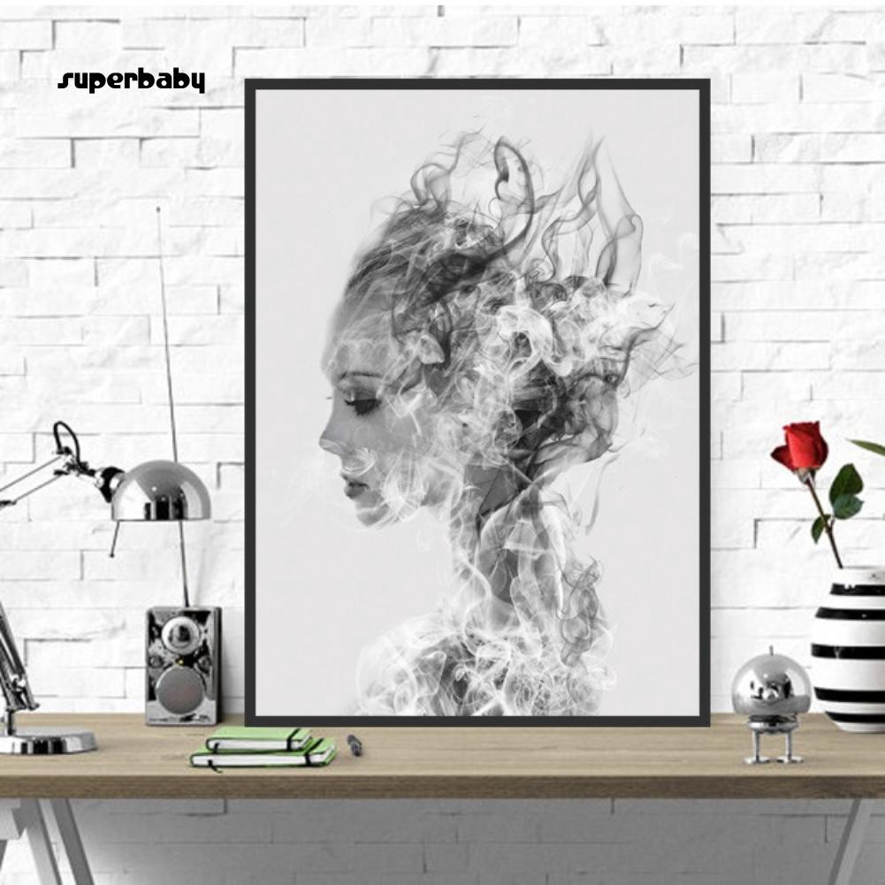 Sbaby Nordic Girl Black White Canvas Painting Wall Art Living Room