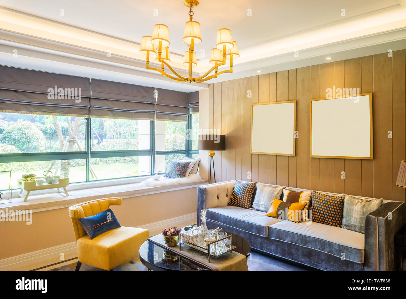 Interior Of Modern Living Room With Beautiful Couch And Huge Win
