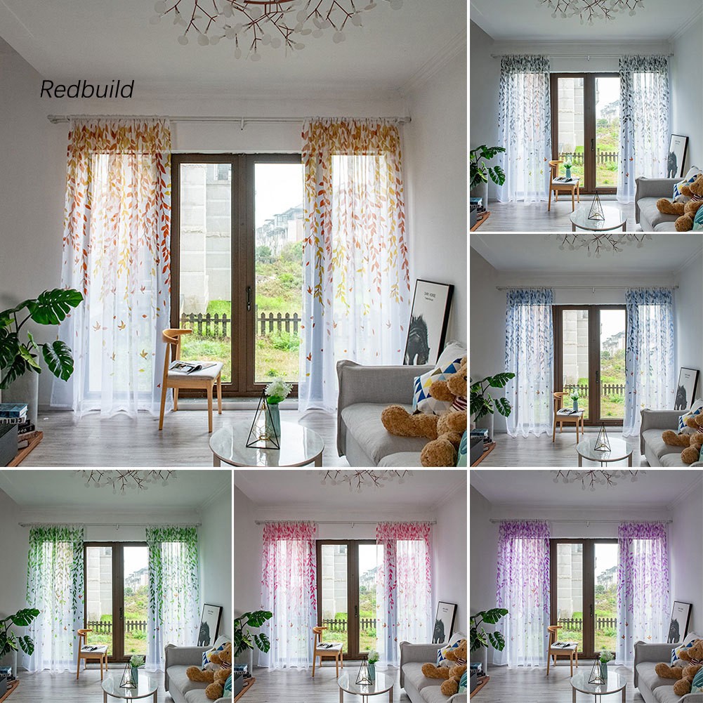 Red 140x250cm Bird Branch Window Curtain Bedroom Living Room Drape