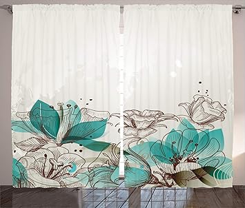 Amazon Com Ambesonne Turquoise Curtains Retro Floral Background
