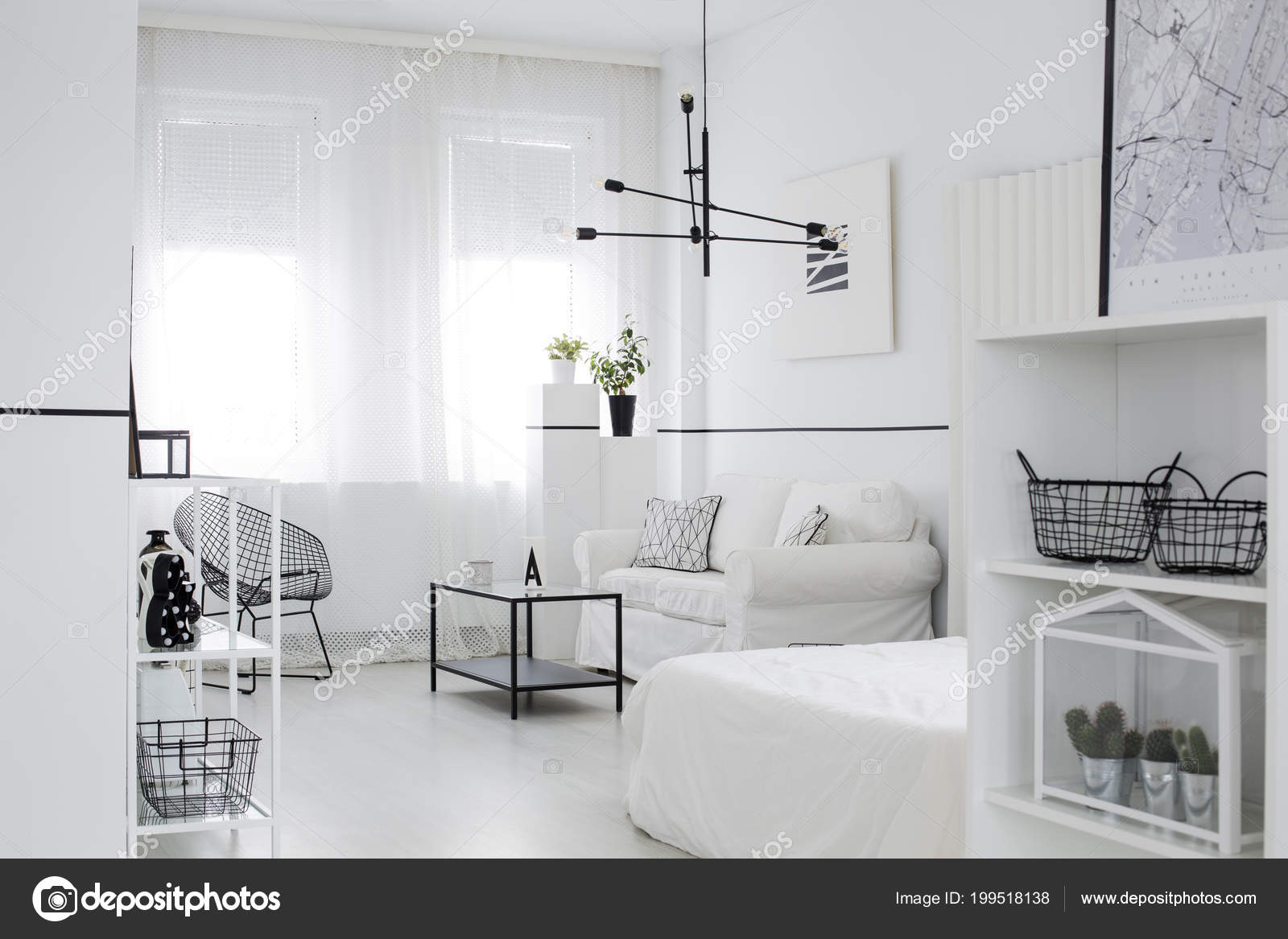Scandinavian Style Living Room Interior Windows Black Lamp White