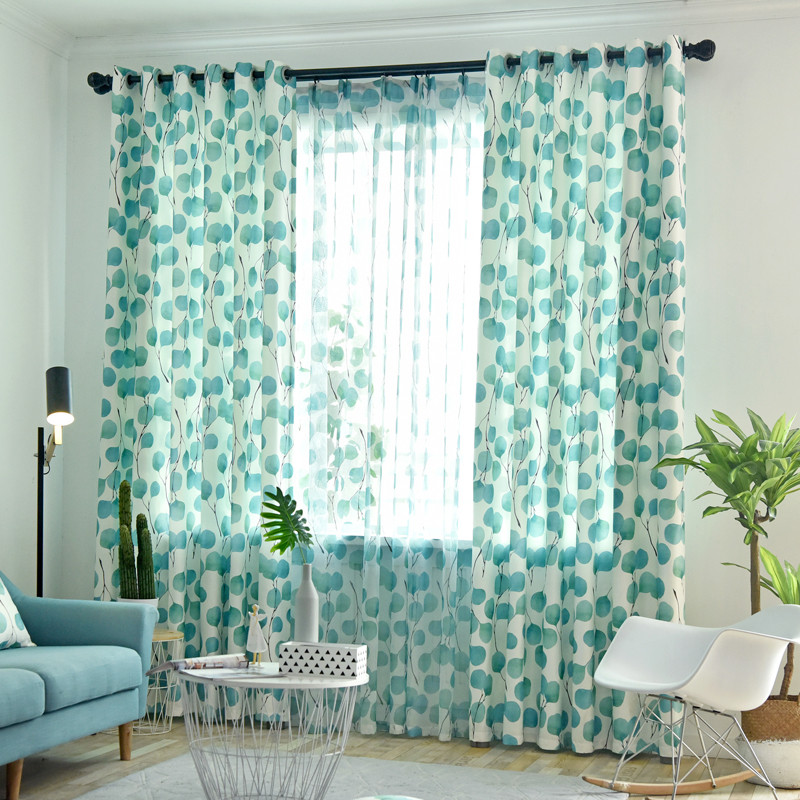 2020 Blue Green Leaf Kids Bedroom Curtains Elegant Living Room