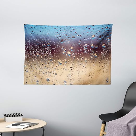 Amazon Com Ambesonne Rain Tapestry Close Up Rain Drops On Glass