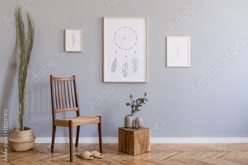 Stylish Bohemian Interior Design Of Living Room With Retro Chair