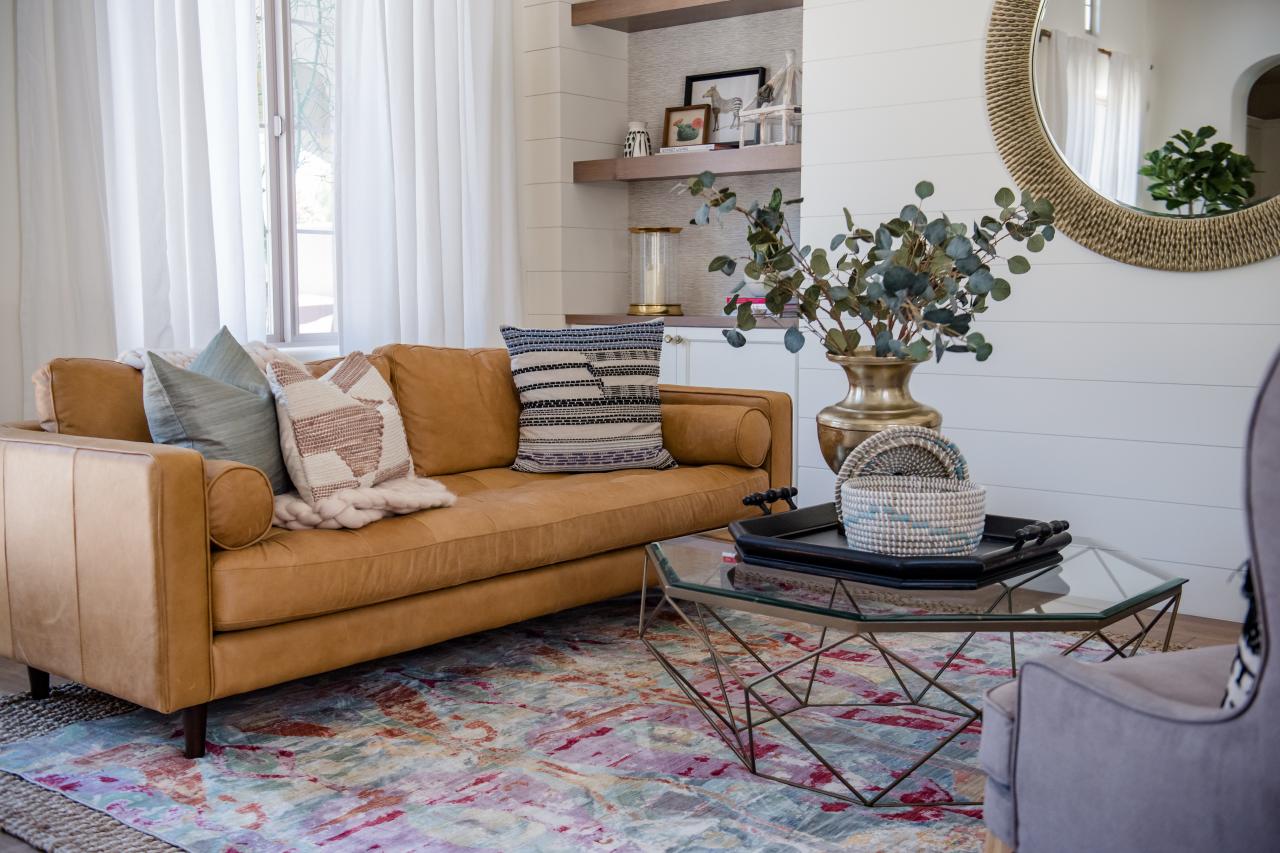 Camel Brown Sofa Infuses Living Room With Warmth Hgtv