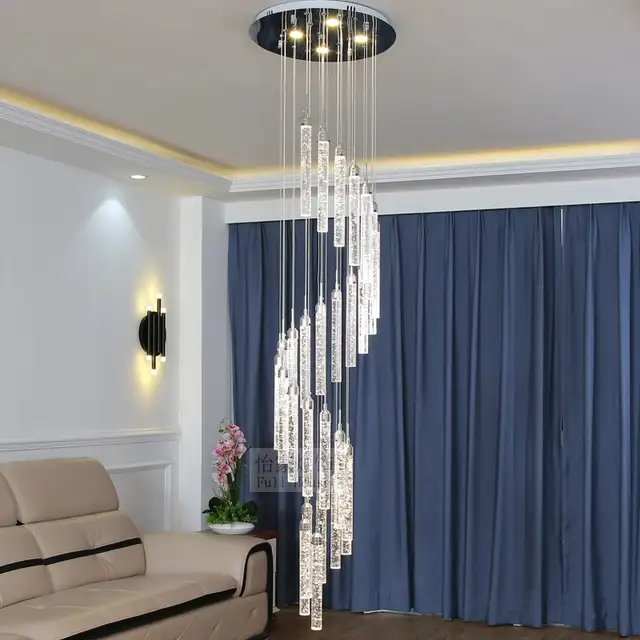 High Ceiling Crystal Chandelier Led Hanging Lamps For Living Room