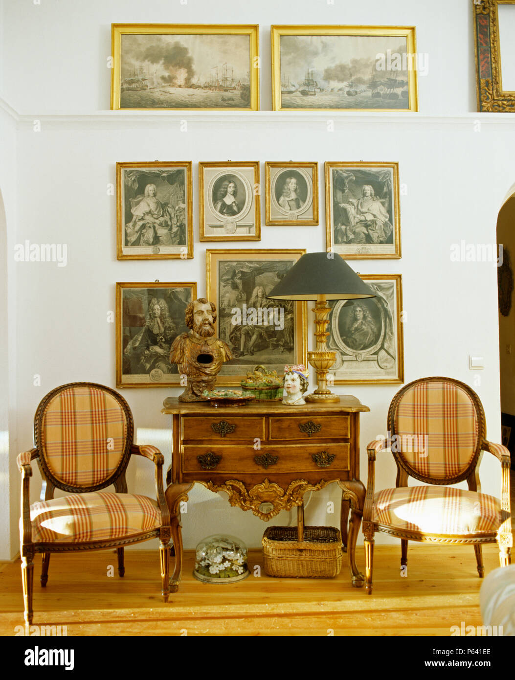 Collection Of Black White Etchings Above Antique Table And Balloon