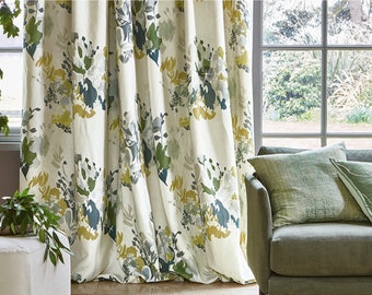 Camille Floral Fabric Grommet Window Curtains Aqua Curtains For