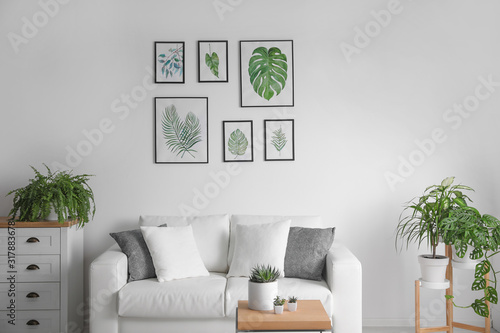 Beautiful Paintings Of Tropical Leaves Over Sofa In Living Room