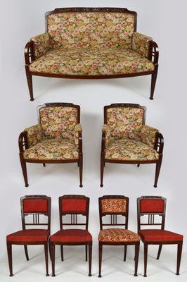Antique Carved Mahogany Salon Living Room Set 1900s For Sale At