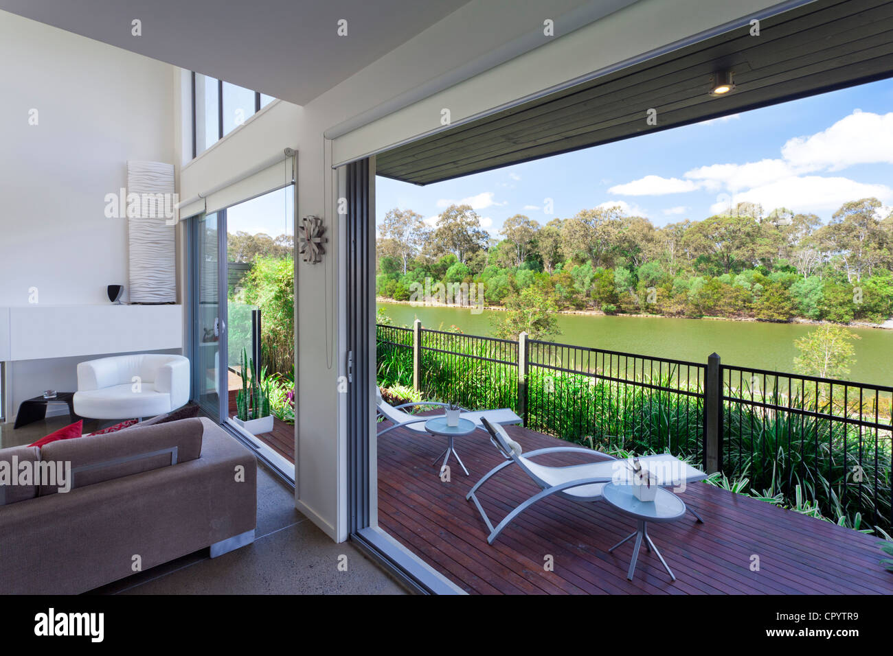 Modern Australian Living Room Overlooking The River Stock Photo