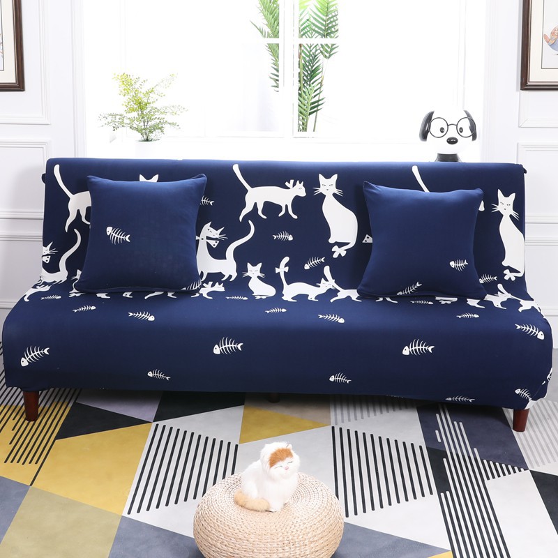 Blue Cartoon Cats No Handrail Sofa Bed Covers For Living Room