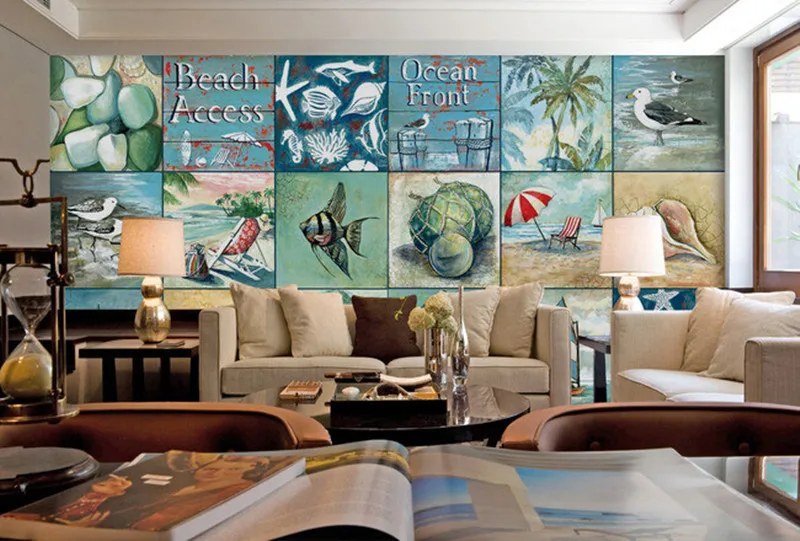 The Custom 3d Murals Small Fresh Blue Mediterranean Style Oil