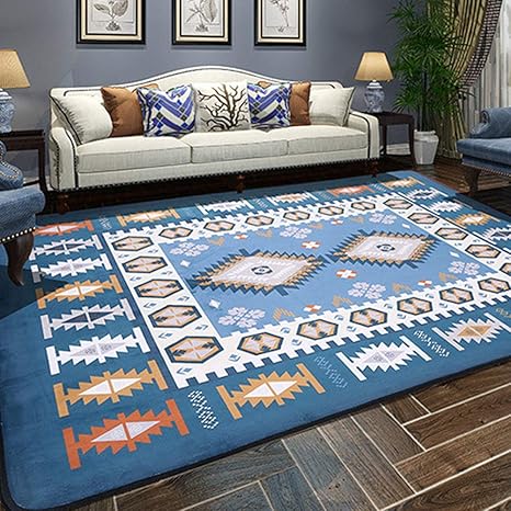 Amazon Com Maxyoyo Blue Mediterranean Style Carpet For Living