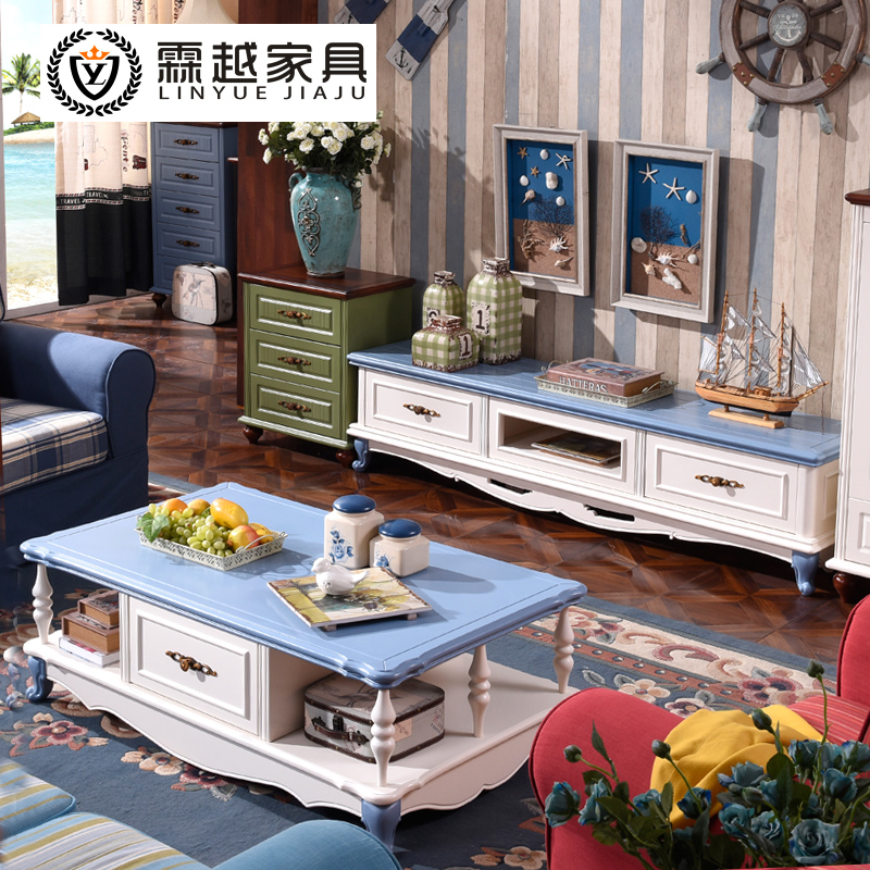 Buy Simple Blue Mediterranean Living Room Coffee Table Sofa Bed