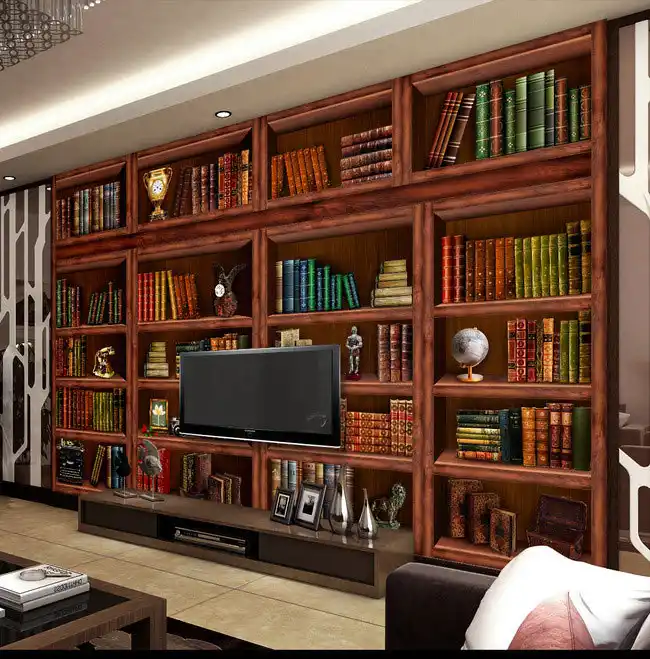 Living Room Bookshelf Bookcase 3d Backdrop Large Mural Fresco