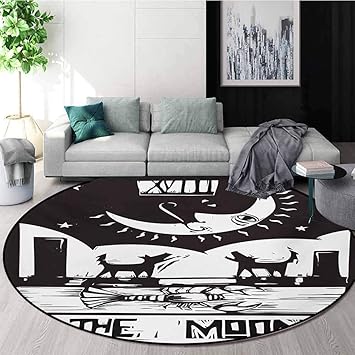 Amazon Com Rugsmat Moon Round Area Rug Brown White Drawing