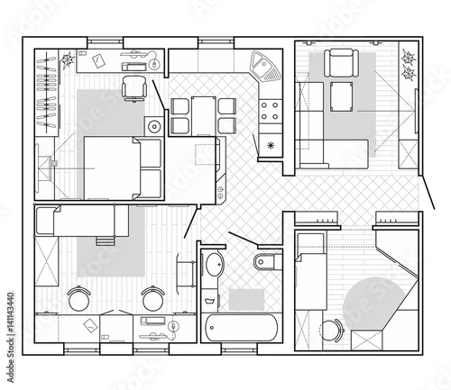 Floor Plan Of A Modern Apartment Interior Design With Kitchen