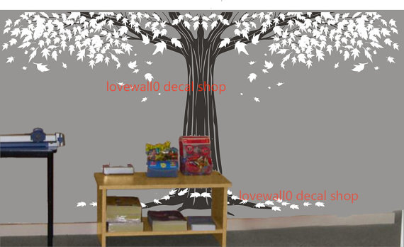Big White Maple Tree With Leaf House Living Room Vinyl Wall Decal