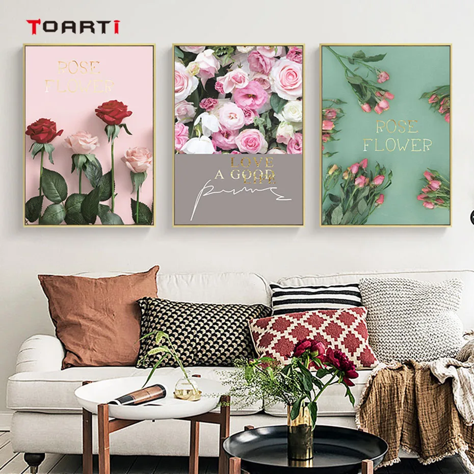 Beautiful Red Pink Roses Flowers Canvas Painting Living Room Wall