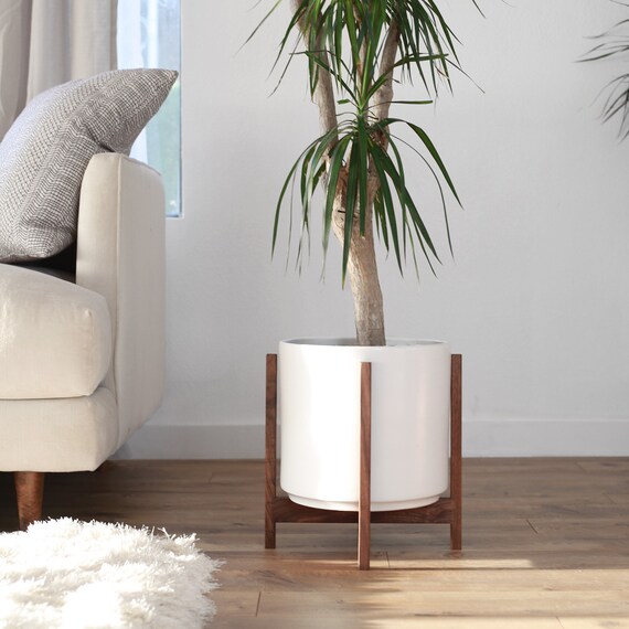 Planter Stand Mid Century Modern Plant Stand With Pot Large Etsy