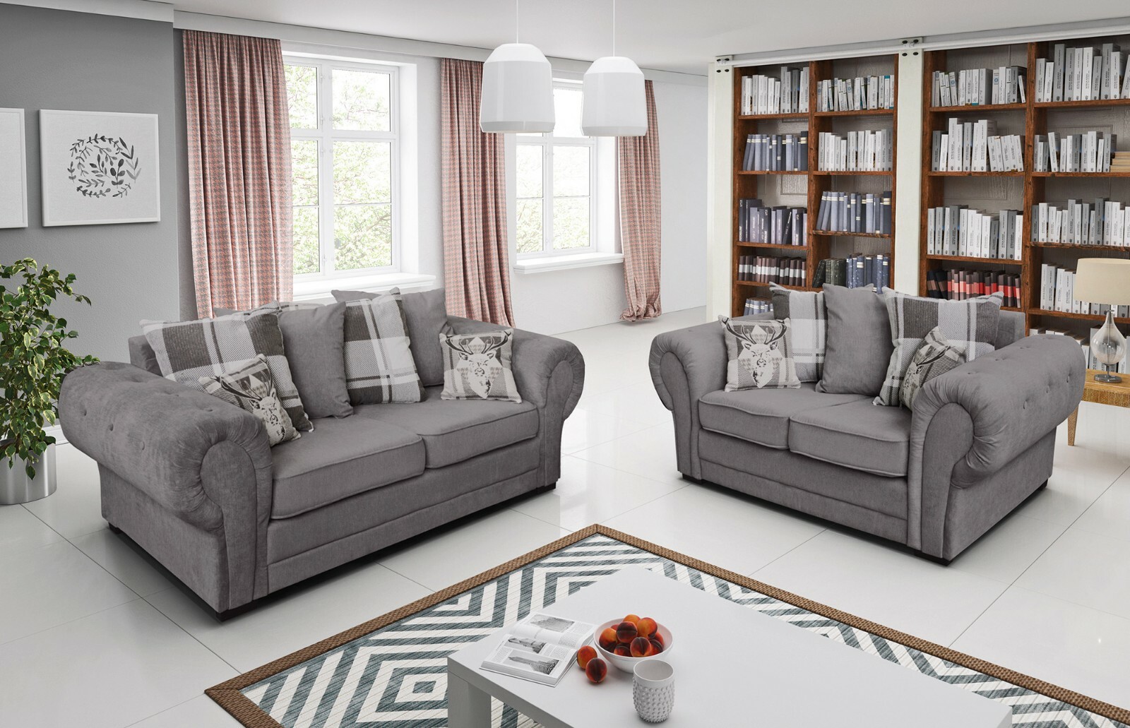 Sofa Set 2 Sofas Big Small Grey Living Room Settee Couch Suite