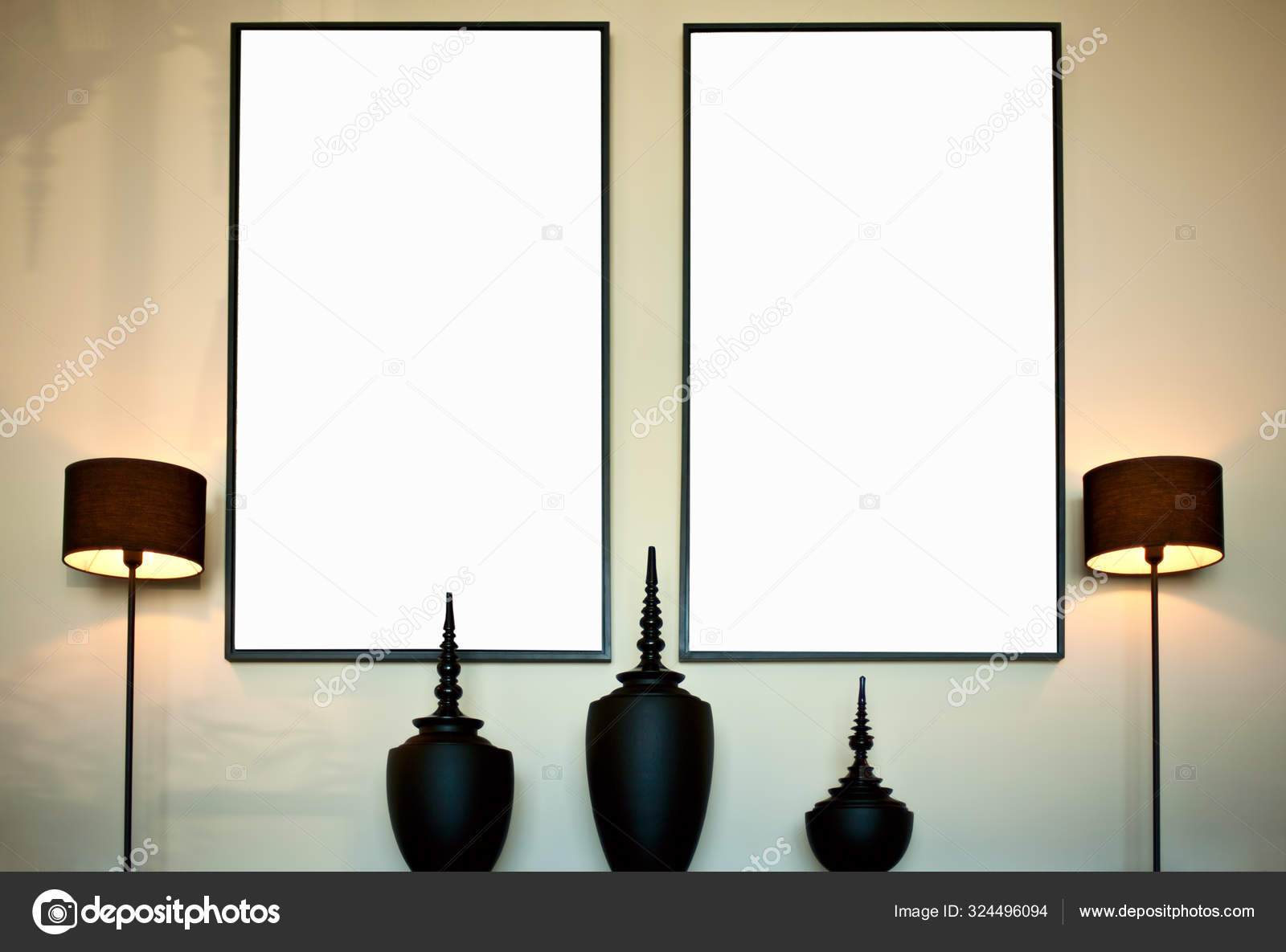 Two Blank Vertical Frames Wall Atmospheric Sunny Living Room