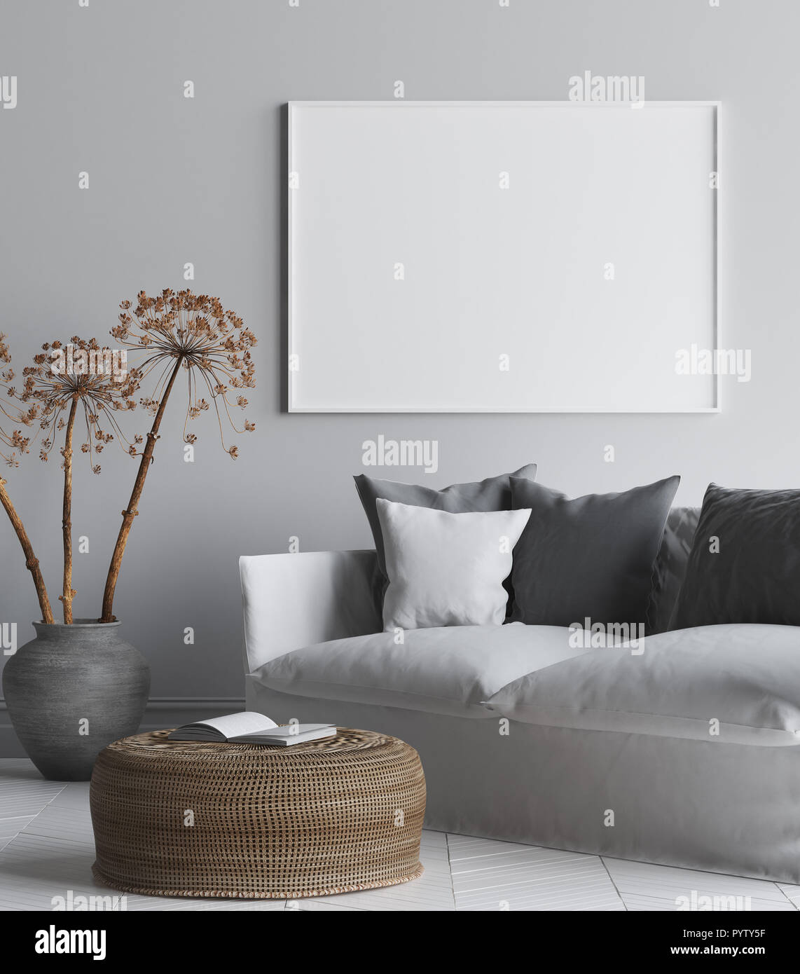 Mock Up Poster Frame In Interior Background Scandi Boho Style