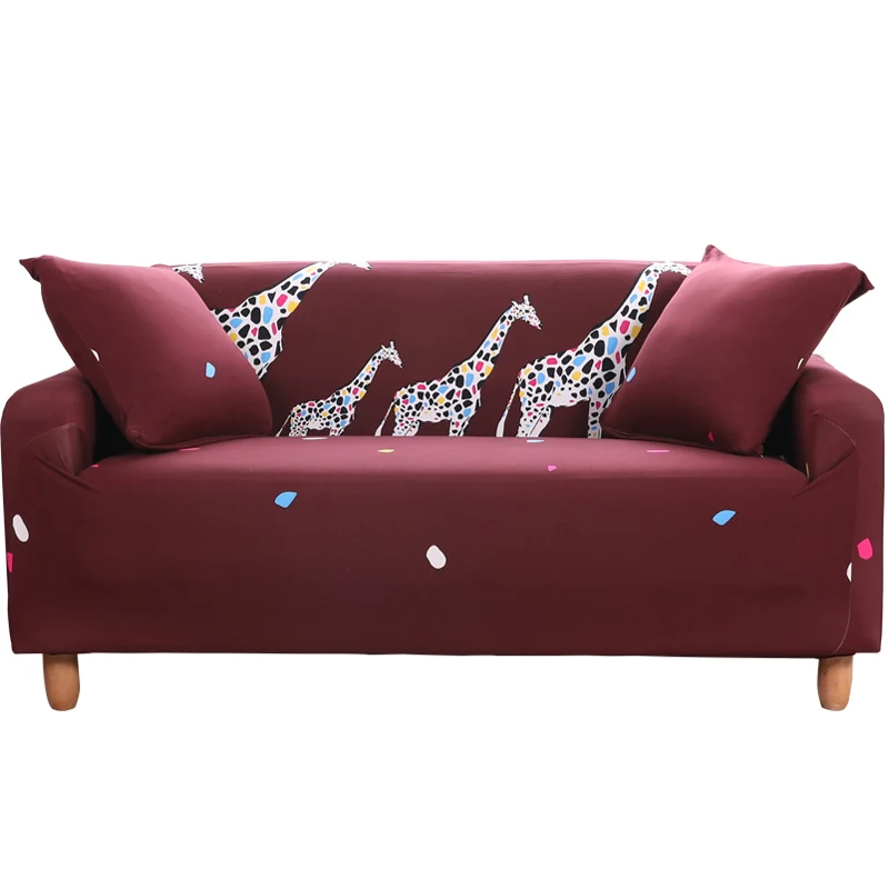 Burgundy Universal Sofa Cover Printed With Giraffes For Living