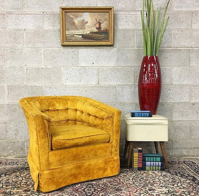 Vintage Bassett Lounge Chair Retro Tufted Yellow Chenille Arm