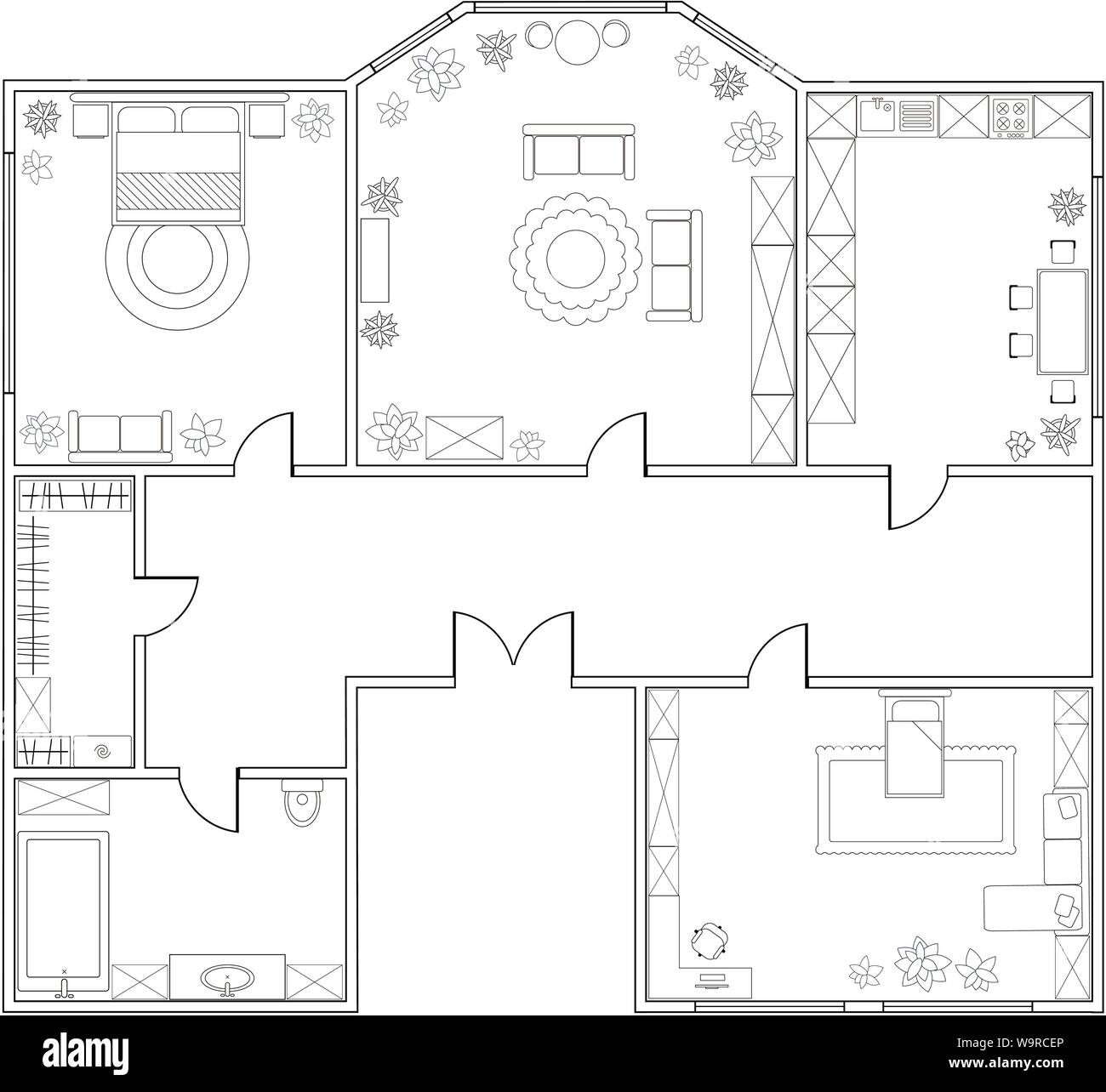 Abstract Vector Plan Of One Bedroom Apartment With Kitchen