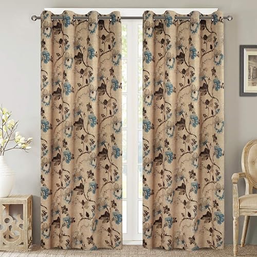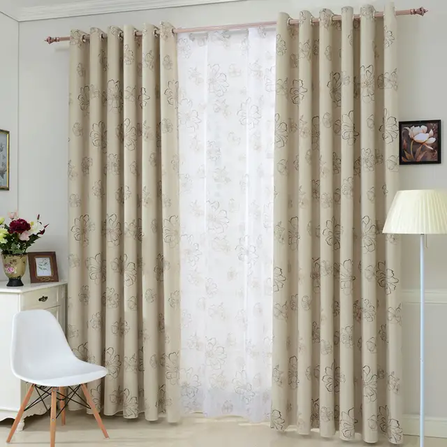 Beige Cream Floral Blackout Curtains For Living Room Bedroom