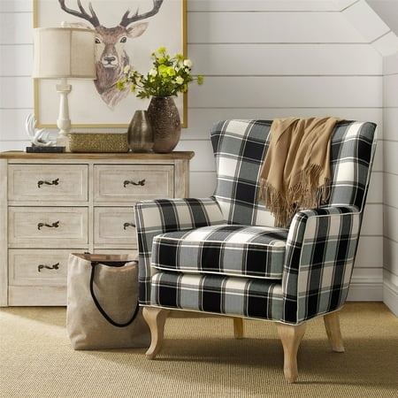 Dorel Living Middlebury Checkered Pattern Accent Chair Black
