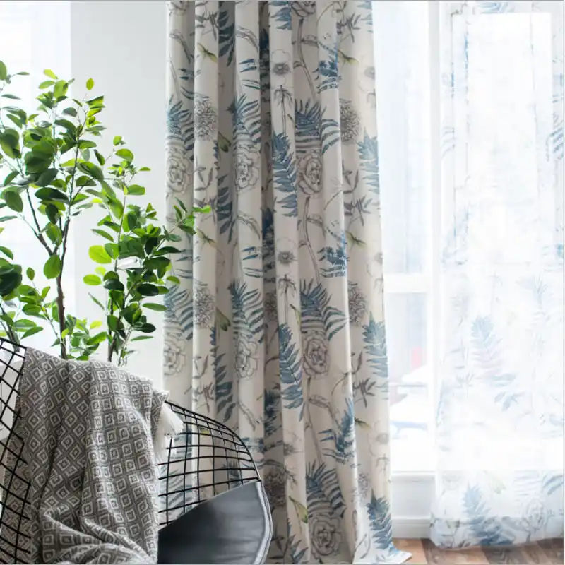 Blue Floral Curtain For Living Room Luxury Semi Blind Drape Window