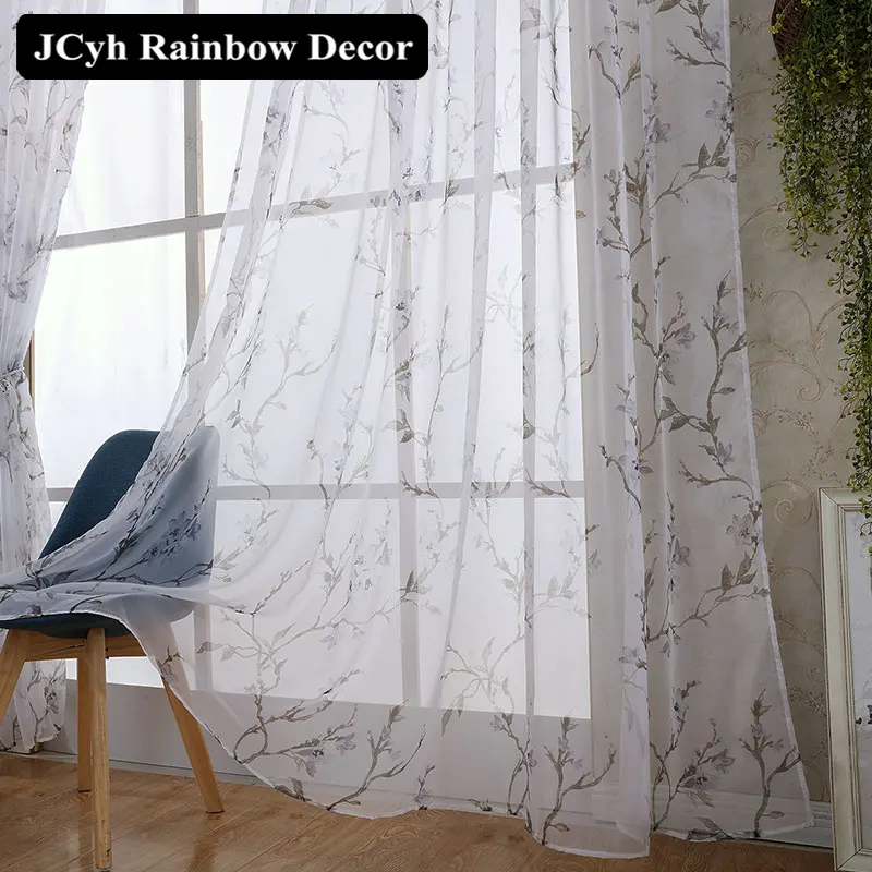 Modern Floral Tulle Curtains For Living Room Bedroom Blue Sheer