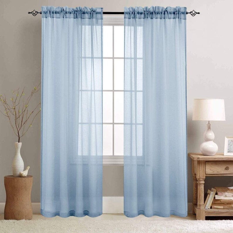 Choosing the right curtains can also contain heat in your room so you can turn your heating off a little earlier and save on your bills. Pure baby blue color sheer curtain. Pairing a light color curtain with a sheer or flowing fabric will only help add to the soft look.