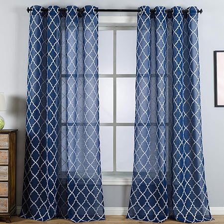 Kotile Navy Blue Sheer Curtains For Kids Room White Moroccan Tile