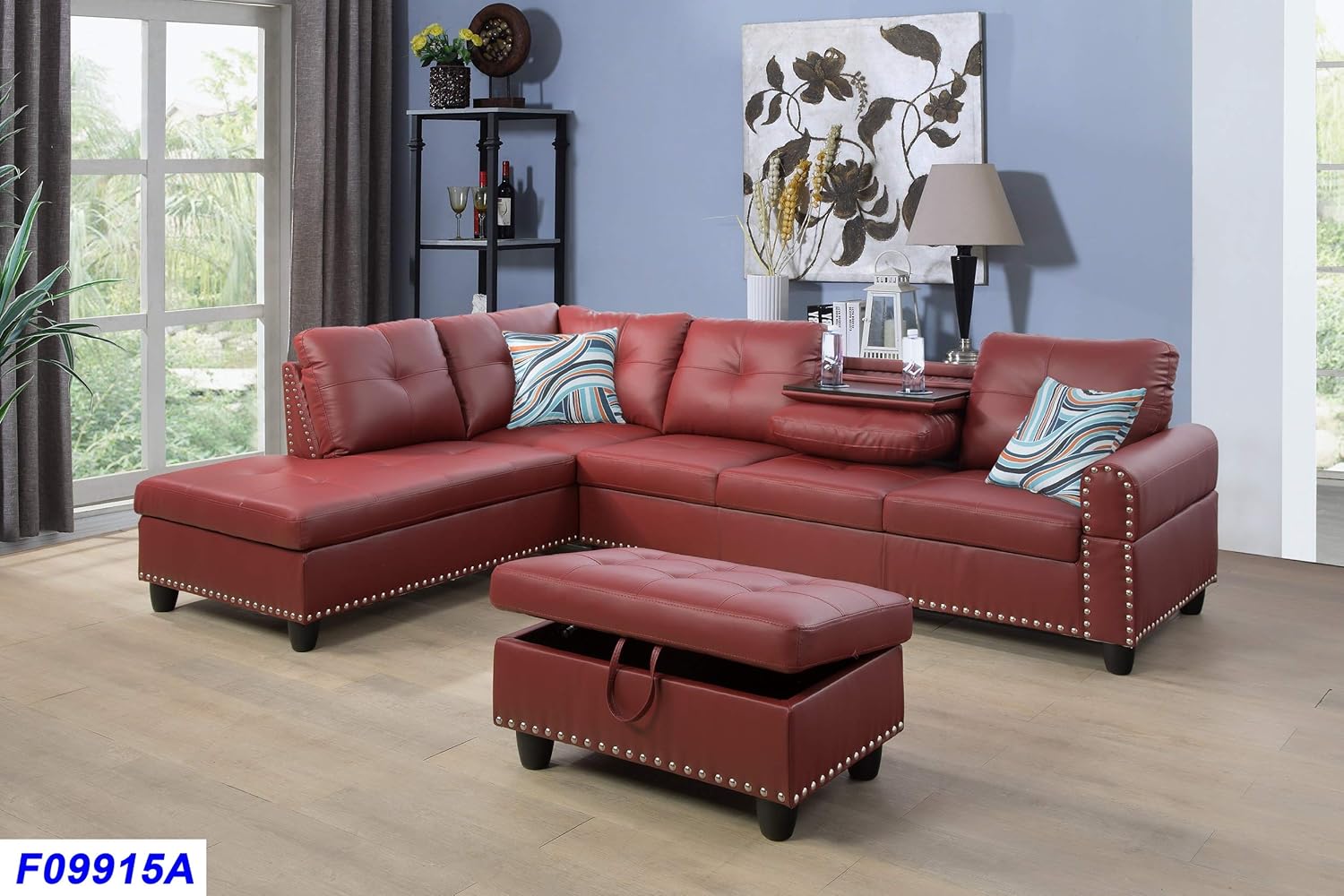 Poundex Azula F7579 Burgundy Bonded Leather Sofa And Loveseat