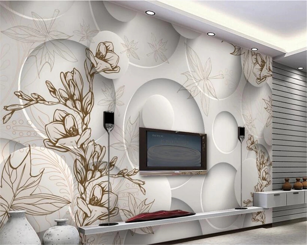 Beibehang Classic Wallpaper Retro Line Drawing Magnolia Maple Leaf